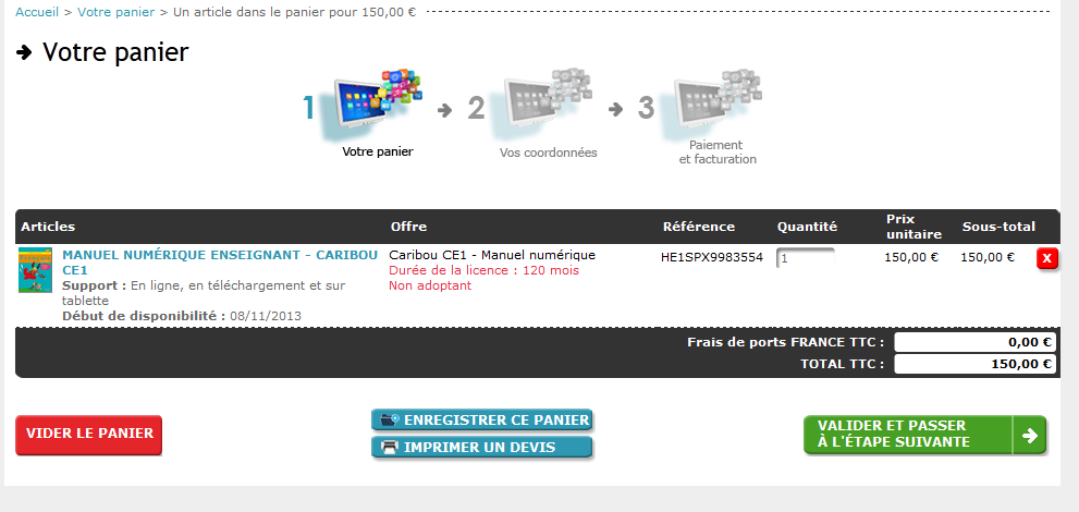 Après avoir imprimé votre devis, vous avez la possibilité d'enregistrer votre panier en cliquant sur le bouton "Enregistrer ce panier". Cette fonctionnalité vous permet